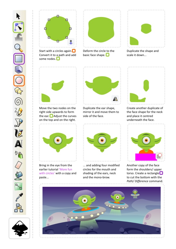Outro material muito interessante sobre o inKscape são as apostilas desenvolvidas  pelo Estado do Paraná. Acesse os links e faça o download dessas duas apostilas baseadas no tutorial on-line do site da inKscape.